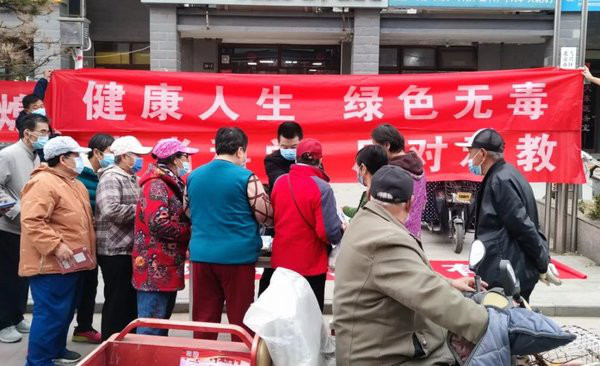 东辛房街道石门营四区社区组织开展禁毒宣传活动,社区工作人员从个人、家庭、社会三个方面介绍毒品造成的不...