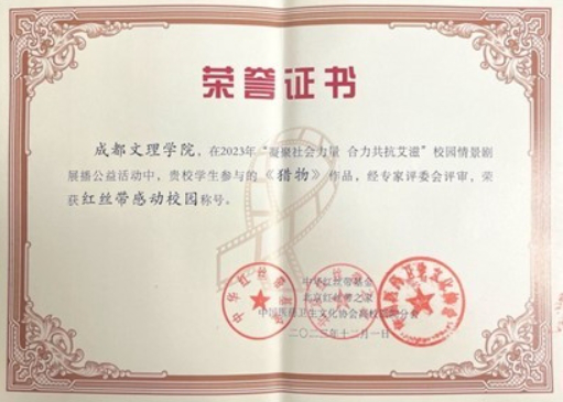四川省成都文理学院荣获“红丝带感动校园”称号