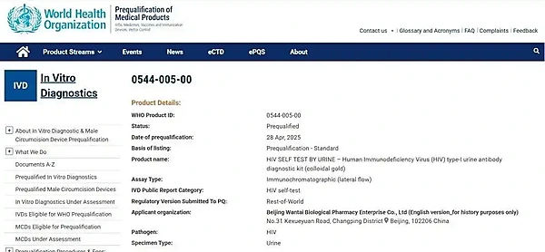万泰生物:全球首款HIV尿液自检试剂获WHO认证