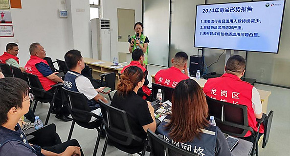为进一步加强基层禁毒工作力量,提升网格员和楼栋长识毒、防毒、拒毒能力,充分发挥其作为禁毒“前哨”的信息员作用,近日,深圳市龙岗区龙岗街道在街道综治中心组织开展禁毒知识专题培训活动,来自辖区的30名网格员和楼栋长参加培训。