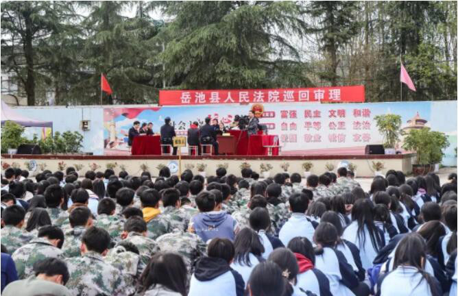 近日,四川省岳池县法院、检察院走进广安电力职业技术学校,通过巡回公诉的方式,对李某某涉嫌贩卖毒品罪、容留他人吸毒罪一案进行公开审理,该校1400余名师生现场旁听庭审。