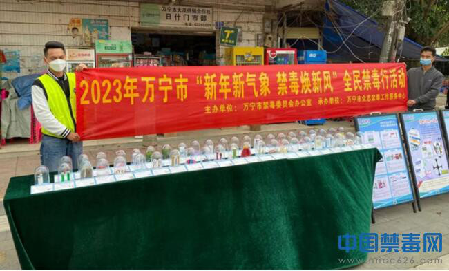 中国禁毒网讯 新春佳节来临之际,为加强新时代全民禁毒宣传教育工作以及切实提高外出返乡人员识毒、防毒、拒毒能力,近期,在万宁市委政法委、市禁毒办的工作指导下,海南省万宁市大茂镇禁毒办联合万宁市众志禁毒服务中心在大茂镇集贸市场开展“新年新气象.禁毒焕新风”宣传活动。
