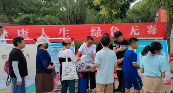 金顶街街道组织相关部门在法海寺公园开展大型宣传活动,向日葵社区工作人员向在场居民发放禁毒宣传手册及宣传品,为大家讲解毒品知识和相关的法律法规,让大家认清了毒品对个人、家庭以及社会的严重危害性,鼓励大家自觉远离毒品、抵制毒品,积极参加禁毒宣传活动,共建和谐家园,营造出了浓厚的社区禁...
