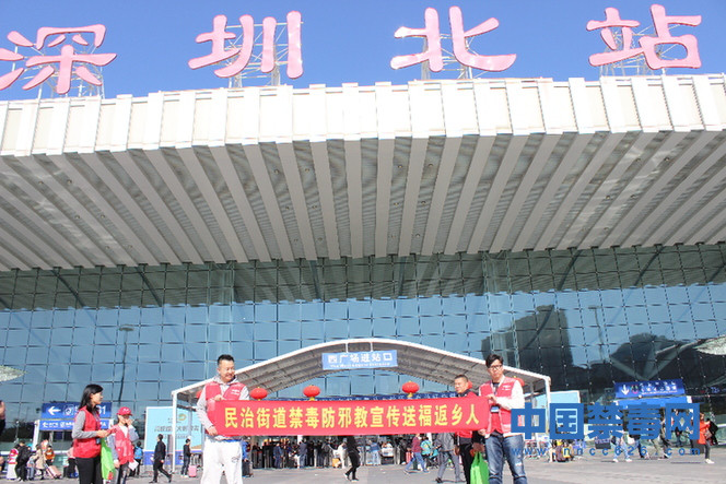 近日,深圳市龙华区民治街道结合深圳北站综合交通枢纽春运日均客流达到68万左右高峰值的特点,在辖区范围内积极开展“送福返乡、平安是福”平安宣传活动。