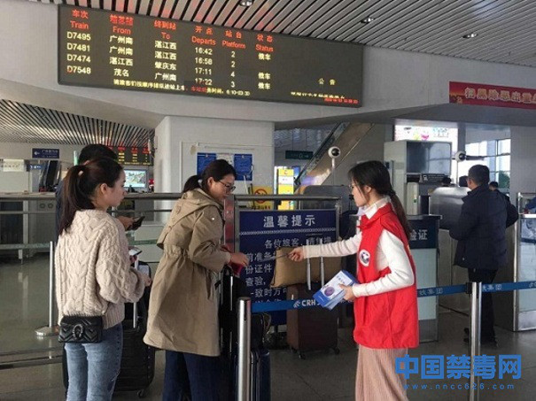 为进一步加强禁毒宣传工作力度,利用春运期间旅游、探亲、返乡客流量大的契机,1月25日,广东省江门市新会区禁毒办组织禁毒志愿者到新会城轨站开展“平安迎新春,禁毒一同行”禁毒宣传活动。