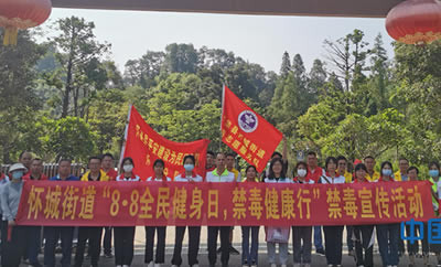 为进一步加大禁毒宣传力度,促进禁毒示范街创建工作顺利有序推进并取得实效,广东省肇庆市怀集县怀城街道在怀集植物园开展以“8·8全民健身日,禁毒健康行”为主题的禁毒宣传活动。