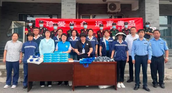大栅栏街道禁毒工作站在辖区内组织开展禁毒主题宣传教育活动,禁毒专职社工和社区工作人员通过摆放宣传展板、发放禁毒宣传手册和禁毒宣传品等方式,向居民群众科普毒品的种类及其对个人、家庭、社会的严重危害等知识,引导广大群众从思想上提高对毒品的防范意识,筑牢了社区禁毒安全防线。