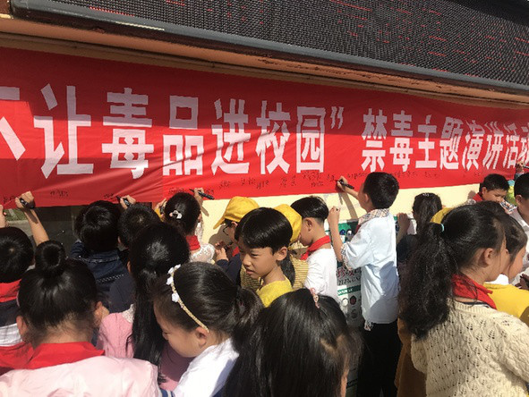 动前,禁毒工作人员在校内摆放了禁毒宣传展板、毒品仿真品,并向学生们讲解了毒品的常识和危害,让学生们进一步了解毒品对个人、家庭、社会所带来的严重危害性。