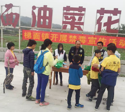1月26日,广州梯面镇禁毒办邀请广州市“小蜜蜂”青少年服务中心的小朋友们担任禁毒宣传志愿者,在红山村做禁毒宣传。广州市“小蜜蜂”青少年服务中心有三名老师是广州市的禁毒宣传大使,在此次宣传活动中给予热情指导。宣传活动现场气氛异常活跃,共派发宣传资料和环保袋100余份,受教育人数200 余人
