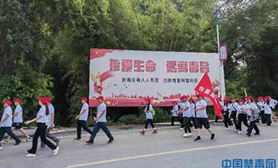 近日,广东省肇庆市怀集县以“六月六金燕文化旅游节”徒步活动群众和游客聚集为契机,县禁毒办组织镇禁毒办、桥头派出所的同志组成“怀集县禁毒办宣传方队”开展禁毒宣传活动。