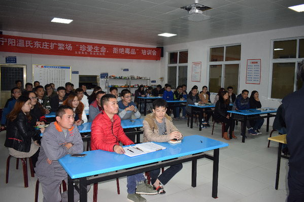 为了让广大群众、企业单位员工自觉抵制毒品、远离毒品,山东省泰安市宁阳县东庄派出所积极组织开展禁毒宣传进企业活动。11月4日晚,东庄派出所组织民警走进宁阳县温氏东庄扩繁场,为该企业的全体员工详细讲解了精心制作的禁毒PPT课件。因辖区企业单位白天上班,工作时间紧张的实际情况,东庄派出所...