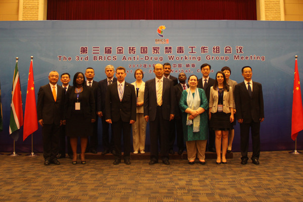 8月16日,第三届金砖国家禁毒工作组会议在山东威海召开。来自中国、南非、巴西、俄罗斯、印度五国禁毒主管部门共计20余名代表参加会议,国家禁毒委员会常务副秘书长、公安部禁毒局局长梁云率中国代表团参会。