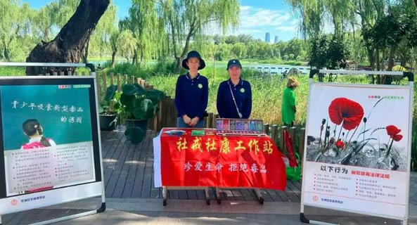 东城区禁毒办联合龙潭街道在龙潭西湖公园组织开展“健康人生 绿色无毒”禁毒宣传活动,禁毒社工现场讲解毒品的种类、吸食毒品的危害和禁毒相关法律法规,向游园群众展示仿真毒品模型、派发禁毒宣传资料,进一步提高了广大群众对毒品危害的认识,有效提升了禁毒宣传教育的传播力、感染力和影响力,为强...