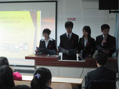 2009年11月15日,由校学生工作处、校医院主办,校红十字会学生分会青春红丝带承办的第九届健康文化节成果汇报在工程训练中心(西区)302成功举办。至此,持续一个多月的北京科技大学第九届健康文化节圆满落幕!