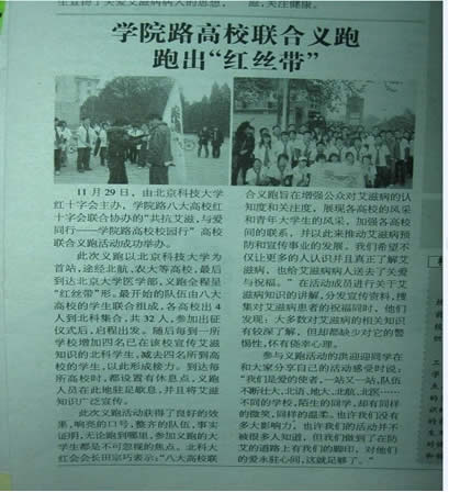 由我校红十字会主办,学院路八大高校红十字会联合协办的义跑活动得到了《大学生周刊》等多家媒体的跟踪报道。