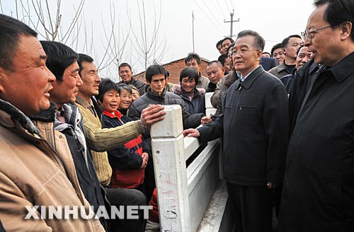 这是温家宝总理来到河南省上蔡县芦岗乡文楼村看望艾滋病患者,和村民交谈。 新华社记者李学仁摄