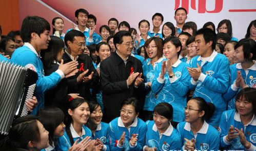 表演台上,志愿者们一边打着手语,一边演唱歌曲《微笑北京》。一曲唱毕,大家纷纷围拢到总书记身边。胡锦涛对志愿者们说,这些年来,首都防治艾滋病工作取得明显成效,这同广大志愿者卓有成效的工作是分不开的,你们功不可没。但也要看到,防治艾滋病工作仍面临艰巨繁重的任务,还有大量工作需要志愿者去做。希望广大志愿者进一步发扬红丝带精神,更多更好地关爱艾滋病患者和感染者,尤其要引导社会不去歧视他们。让我们共同努力,为推进我国防治艾滋病事业不懈奋斗。