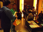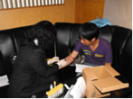 活动伊始,由崇文区性病艾滋病防治所焦所长讲话,对崇文区前一段时间的MSM同伴干预活动进行了总结并说明了本次活动的主要目的。接下来由许贺医生组织MSM人员进行以艾滋病高危行为识别为主题的同伴干预游戏活动。通过本次干预活动使各位MSM人员熟悉了艾滋病的传播途径,加强了自我保护意识。最后,由马医生对在场MSM人员进行艾滋病的免费自愿咨询检测。