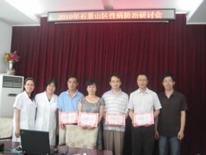 为控制石景山区性病的流行,规范性病诊疗服务,加强对性病诊疗服务及性病疫情报告工作的管理,提高石景山区性病诊疗服务及性病疫情报告的工作水平,2010年6月9日,石景山区疾控中心组织成立了石景山区性病防治专家组。特聘请石景山区各医疗机构多年从事性病诊疗和防治方面的专家共4人担任专家组成员,并颁发聘书。同时要求各专家成员要配合积极疾控中心,加强全区性病疫情的管理及性病疫情报告的监督检查工作,为全区的性病诊疗及疫情报告提供技术支持和指导意见,定期参加疾控中心组织的各种性病防治知识经验交流活动,为石景山区性病防治工作积极的贡献力量。