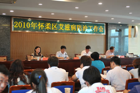 为落实好各项艾滋病防控措施,7月13日下午,怀柔区政府召开了2010年艾滋病防治工作会,会议由区卫生局高永革局长主持,副区长周东金出席了此次会议并作了重要讲话,27个相关委办局单位、16个镇乡政府、街道办事处以及各社区卫生服务中心的主管领导参加了此次会议。