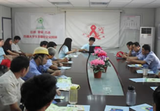 中心工作人员和大学生志愿者们用通俗易懂的语言着重对艾滋病的传播途径,易感人群,以及预防和治疗措施进行详细讲解,并挑选了艾滋病真实个案制作了图文并茂的PPT幻灯演示,作为案例。还特别选取了一些针对外来务工人员的防艾宣传资料,以及安全套发放给工地的工人。现场还与工人们进行互动,在讲解中提出问题与工人一块讨论,讲座结束后中心工作人员还解答了现场工人针对艾滋病性病相关知识的提问。