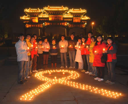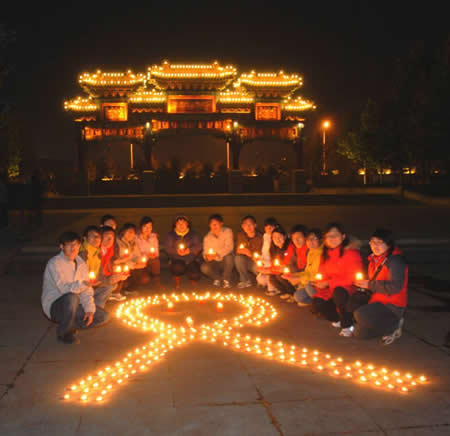 在第23个世界艾滋病日来临之际,2010年10月28日晚,通州区秉承着大赛“落实爱的责任。阻止艾的脚步”的精神,在通州区运河文化广场举办了“点亮红丝带 燃起希望之光”的活动。