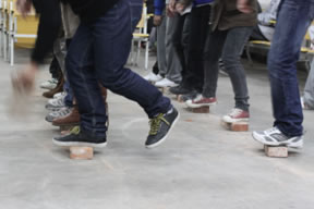 在“踩砖头”的游戏中,大家想法新颖、独特,每位同学大手牵小手相互扶持着,用了各种方案,最终达到了终点,体现出了团队的合作精神。