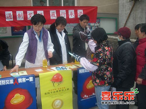 12月1日早9:00,西长安街社区卫生服务中心门口已经挂好“遏制艾滋履行承诺”的横幅,“预防艾滋我有一套”等艾滋病防治宣传展板和《出门在外预防艾滋》、《预防控制性传播疾病读本》、《预防艾滋你知我知》等宣传资料和避孕药具在户外宣传咨询台上整整齐齐的排列,西长安街社区卫生服务中心及西长安街街道办事处的领导及工作人员冒着严寒为就诊患者和过往行人进行着艾滋病防治的宣传。