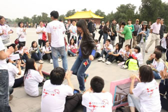 2011年5月8日是第64个“世界红十字日”,北京市红十字会防艾核心小组(简称:小组)组织了来自北京11所高校的26名志愿者在天坛公园举行“微笑拥抱,快乐生活”的主题外展活动。