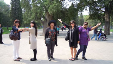 上午10点半,所有志愿者在天坛名景祈年殿前集合,围坐在一起分享此次外展的心得和体会。志愿者们纷纷讲述自己积累了一上午的感动心情,他们讲述了自己的经历,发表了对深刻环节的感悟,同时提出了自己在活动中遇到的问题,许多倾听的志愿者也提出了针对问题的解决方式。分享期间,很多游客停留在队伍旁,一起聆听,还有很多举着专业相机的游人将志愿者当成天坛一景不停拍摄。
