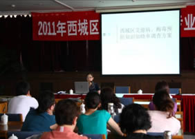 技能得到提高,更好的完成2011年工作任务。接下来,性艾科孙晓云副科长向与会人员讲解了《西城区艾滋病、梅毒预防知识知晓率调查方案》,主要从问卷填写、劳务分工、注意事项等三方面做了详细介绍。结束后,孙科长向辖区内7个社区街道保健科布置了2011年街区内娱乐场所暗娼干预检测工作任务,并邀请疾控中心实验室徐俊科长针对艾滋病快速检测试剂盒的使用方法及注意事项进行了详细说明。最后,区CDC性艾科于建平大夫针对艾滋病流行形势及职业暴露等知识进行了普及培训。
