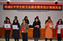 2012年1月5日,西城区(北区)中学生防艾志愿者徽章设计大赛颁奖会在西城区中小学保健所举办,全区30多家中学校医、老师参加颁奖会。西城区疾控中心周红玲主任、原西城区教委体卫科胡慧霞科长、西城区中小学保健所张岚所长、殷汉军副所长为获奖同学和单位颁奖。此次活动共收集参赛作品124幅,经专家评审后,评选个人作品奖项一等奖1名,二等奖3名,三等奖6名,优秀奖4名;单位奖项优秀组织奖16名。北京市第八中学分校参赛作品“长城、红丝带、花朵” 构图精巧,寓意贴切,荣获大赛一等奖,该作品将被作为设计手稿用于制作西城区防艾志愿者实物徽章。