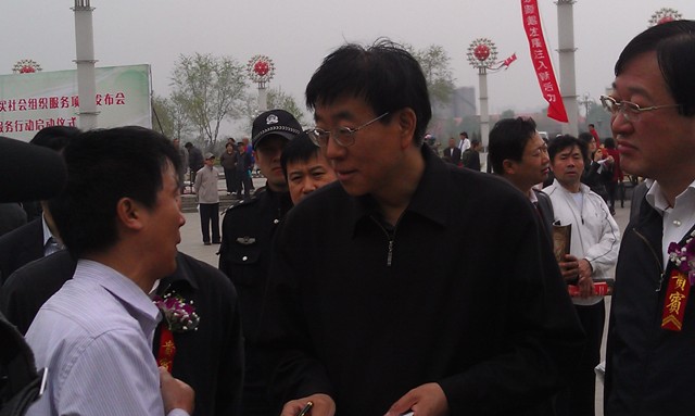 2012年4月19日上午,门头沟区委、区政府在门头沟永定河文化广场召开“2012年门头沟区政府购买社会组织服务项目发布会暨社会组织公益服务行动启动仪式”,区委副书记、区长王洪钟等区领导到会讲话。会议结束后,王洪忠等区领导逐一浏览社会公益项目的展示介绍,并在门头沟倚山家园社区关于成立社区禁毒协会的展板前停下脚步。门头沟禁毒志愿者主动上前介绍门头沟禁毒工作的相关情况,听完介绍王区长点头表示赞许,欣然在禁毒明信片上为门头沟禁毒工作题词:“做好禁毒工作,促进社会和谐”。