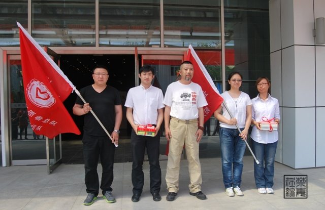 北京禁毒志愿总队宣传教育中心主任董光为新成立的志愿者队伍授旗。(刘飒/摄)