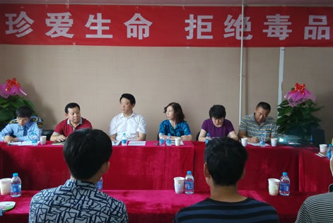2014年6月26日下午,市卫生和计划生育委员会在石景山区美沙酮社区药物维持治疗门诊举办了“6.26”国际禁毒日主题宣传活动。北京市禁毒办副主任、北京市公安局禁毒总队政委金志海、北京市禁毒办副主任、北京市卫生和计划生育委员会疾控处处长谢辉、北京市公安局禁毒总队动态管控大队政委荆军、北京市食品药品监督管理局安监处张亮博士以及石景山区美沙酮社区药物维持治疗区级工作组的领导和有关同志参加了活动。