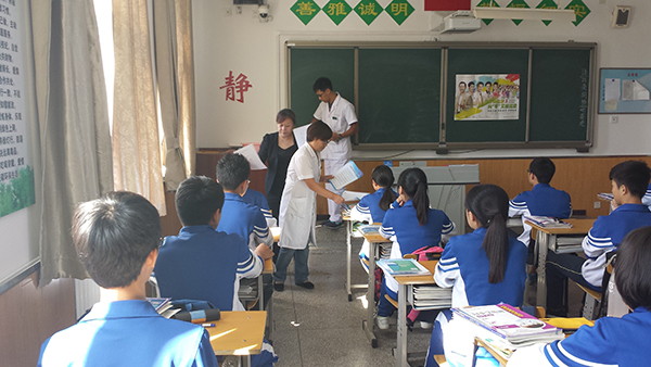 区疾控中心性艾科工作人员为学生发放了艾滋病防治知识宣传资料,并发放“艾滋病防治知识调查表”,对艾滋病健康教育及防治知识知晓率进行调查。
