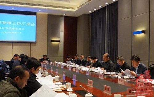 图为督导组听取湖北省武汉市禁毒工作汇报
