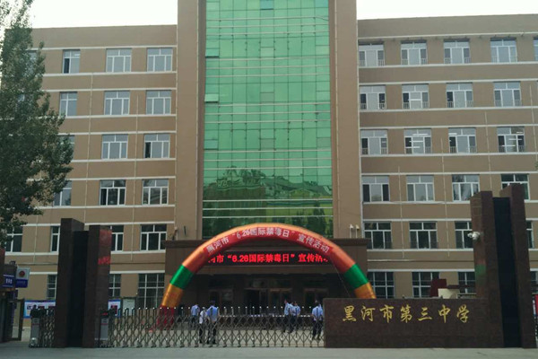 中国禁毒网讯(通讯员 王红)6月26日,黑河市禁毒委在黑河市第三中学举行“6.26”国际禁毒日宣传活动。黑河市政府党组成员、市公安局党委书记、局长、市禁毒委副主任邓福才,市公安局党委委员、副局长邱晓林,市公安局党委委员、政治部主任张旭宇,爱辉区公安局局长、区禁毒委副主任楚乃龙,市公安局党委委员、合作区公安局局长刘修忠,市、区禁毒委各成员单位主要负责同志,市区公安机关禁毒民警和禁毒志愿者代表、教师、学生共1000余人参加此次活动。