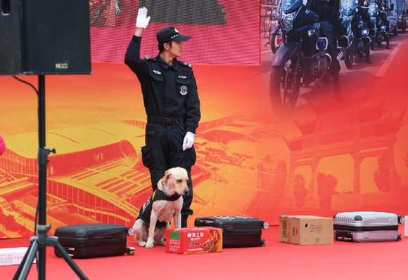 本次禁毒宣传活动精彩纷呈,除了传统的禁毒知识展板、毒品样品展示以外,还设置了有奖问区与模拟吸毒实感体验区,吸引了众多市民群众驻足参与游戏与体验。此外,警犬搜毒演示环节更将活动推向了高潮,首先在表演区放置10个空的行李箱子,请现场群众任意选1个箱子放置毒品,然后让搜毒犬进行搜查,别看警犬外表呆萌,却迅速找出“答案”,其精彩表现让现场观众拍案叫绝。这些互动环节拉近了警民间的距离,增强社会各界和广大市民群众对公安工作的理解和支持的力度。最后,现场还设了“关注有奖”区,让群众关注禁毒公众号,从中了解更多禁毒的内容,切实增强拒毒防毒意识。
