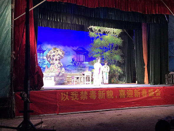 2018年2月22日晚上,广州市花都区花城街禁毒办联合东边村委举办新春戏剧表演晚会暨禁毒宣传活动。现场共吸引了200多名村民群众参与。