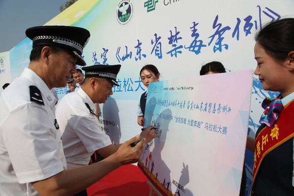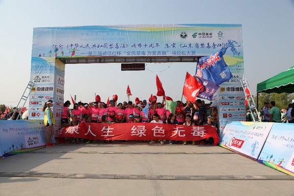 本次活动以“健康人生、绿色无毒”为主题,将健身运动与禁毒宣传相结合,旨在推进禁毒宣传社会化,提高人民群众自觉抵制毒品的能力,倡导健康文明的生活方式。活动分男、女半程马拉松(21.0975公里)和男、女11公里迷你健康跑两个项目,全省各地3000余名体育爱好者、禁毒志愿者置身于美丽的绣源河风景区,在运动中享受健康绿色的美好生活,赛道沿途设置禁毒知识展板100余块,各类禁毒主题标识、条幅300余个,民警向现场群众深入宣传《山东省禁毒条例》和《山东省毒品违法犯罪举报奖励办法》,发放禁毒宣传品,解答群众咨询,营造了向毒品宣战,为人民而战的浓厚氛围,取得了良好的宣传效果。