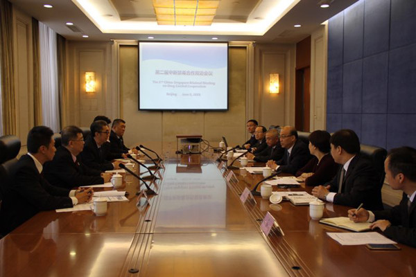 中国禁毒网讯 2018年6月5日,第二届中新禁毒合作双边会议在京举行。国家禁毒委员会常务副秘书长、公安部禁毒局局长梁云和新加坡中央肃毒局局长黄思松分别率团与会。国家禁毒委员会副秘书长、公安部禁毒局副局长魏晓军及禁毒局缉毒行动处、禁制毒品处、国际合作处有关负责人参加了会议。