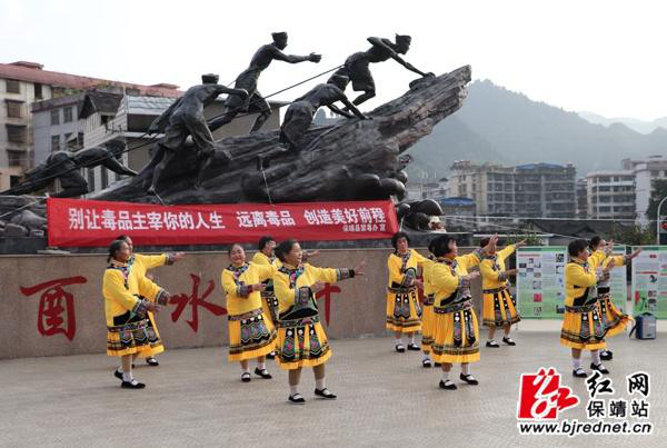 “旧社会里吃大烟,那是家破人又亡;粘上毒品无好处,面色苍白像死相;现在禁毒常宣传,远离毒品家团圆;如果硬要吃毒烟,苦果味道自已尝…… ”近日,保靖霞光老年人艺术团与县禁毒办、公安局禁毒大队联合在县城纤夫广场开展了一次特别的土家山歌汇演活动。