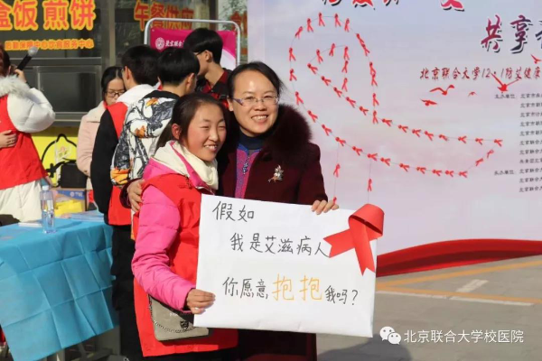 2018年11月30日,朝阳区疾病预防控制中心与北京联合大学校医院、北京联合大学红十字会学生分会共同策划举办了“为爱知艾、共享青春”主题宣传活动。朝阳区疾病预防控制中心副主任魏云芳、北京联合大学副校长张辉、校党委宣传部部长孔军等领导与同学们一起参与活动,普及艾滋病相关知识。