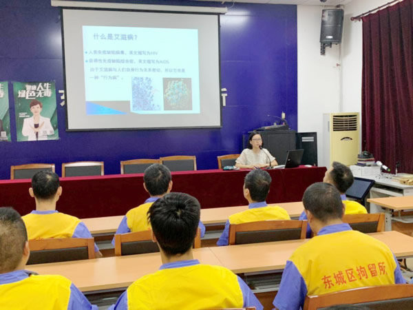 6月26日是“国际禁毒日”, 为进一步增强全民禁毒防艾意识,传播禁毒防艾理念,宣传禁毒防艾政策,2019年6月24日上午东城区疾病预防控制中心性艾科专业人员赴东城区拘留所开展“珍爱生命、远离毒品、携手抗艾”宣传活动。活动以讲座的形式开展,东城区拘留所30名在押人员参加了本次宣传活动,讲座围绕艾滋病防治、毒品的危害等知识,通过图片展示、观看教育短片等形式为大家生动形象、深入浅出的讲解了艾滋病的传播途径、高危行为的种类、毒品的危害等。通过本次禁毒防艾宣传活动,进一步提高了拘留所在押人员对艾滋病的正确认识、对毒品的警醒,并呼吁大家养成良好生活习惯、洁身自爱、远离毒品。