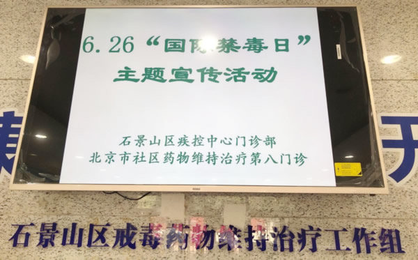 6月26日是国际禁毒日,石景山区疾病预防控制中心美沙酮门诊既北京市药物维持治疗第八门诊举办以“远离毒品,珍爱生命”为主题的活动,石景山区检察院相关领导参加了主题活动。活动中展出了“扫黑除恶”、“毒品的危害”及“相关法律法规”等禁毒知识宣传板及折页,门诊为全体服药人员发放生活用品和宣传品,并为需要的患者进行专业的心理咨询。