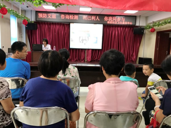 2019年11月13日,南邵社区卫生服务中心在北郡嘉源小区开展了防艾知识健康大讲堂活动。艾滋病在很多人心中如瘟疫一般可怕,很多人谈艾色变,为了让广大社区居民认识艾滋病、了解其主要症状及表现、治疗方法及预后、掌握预防艾滋病的方法,我们特开展了本次防艾健康讲座及咨询活动。动员居民科学防艾,不恐艾、不歧艾,对艾滋病人群应给予关心爱护。此次活动共有50余名居民参加,发放宣传折页3种150份。通过此次宣传使广大居民对艾滋病有了一定的了解,能够避免一些高危行为,从而减少感染艾滋病病毒的风险,对辖区艾滋病的防控起到一定的作用。