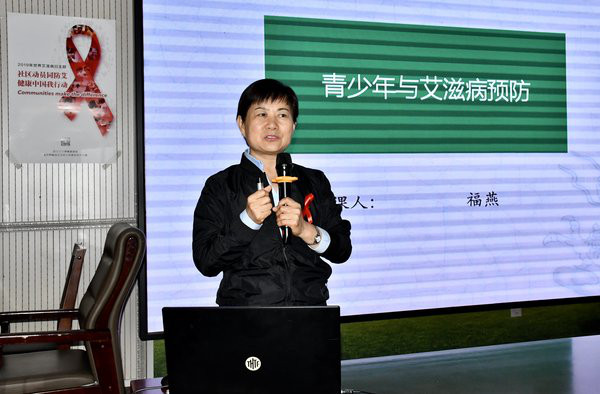 最后,怀柔区疾病预防控制中心性病与艾滋病防治科科长蒋贵英科长以怀柔区艾滋病防控形势为主题,介绍了怀柔区艾滋病流行状况及区卫生健康系统可给民众提供的防控服务,使师生对于身边的情况有了更深入的了解。