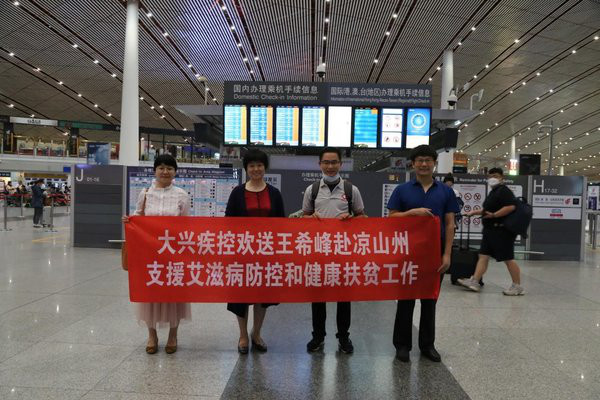 为深入贯彻落实习近平总书记关于深度贫困地区脱贫攻坚系列重要指示精神,大兴区疾控中心积极响应北京市疾控中心关于承担对口支援四川省凉山州美姑、越西两县的艾滋病防治和健康扶贫攻坚工作,选派中心微生物检验科科长王希峰同志作为2020年对口支援四川凉山派驻人员。8月20日,王希峰同志从首都机场出发前往凉山州,大兴区疾控中心副主任李冬梅等一行人为其送行。