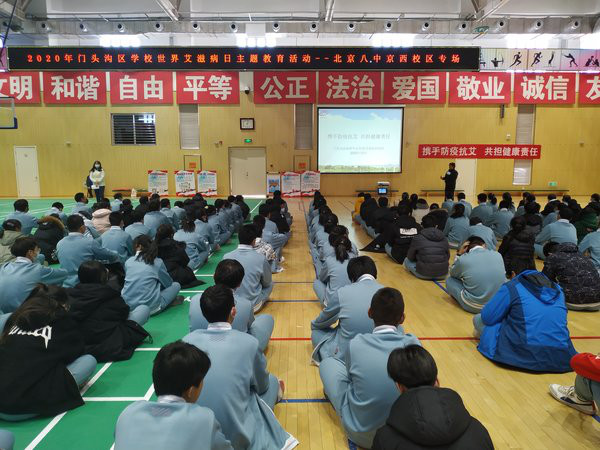 为提高本区学生性病艾滋病防治知识普及率,保护学生健康,2020年12月1日前后,门头沟区疾控中心与门头沟区中小学卫生保健所联合对本区高中校开展了覆盖率100%的主题宣传与讲座活动。北京市性艾协会、门头沟区团委、北京佑安爱心家园·恬园工作室、北京同心相随志愿者发展中心共同参与,并为活动提供了大力支持。